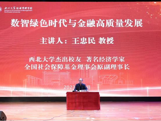 11月17日,杰出校友、著名经济学家、全国社会保障基金理事会原副理事长王忠民教授做客我校“侯外庐学术讲座”第三百二十一讲、经管学院“炼成讲坛”第二讲、第四届“开源证券-350vip8888新葡的京集团”创新人才实验班开班第一讲、350vip8888新葡的京集团MBA/EDP“名家面对面”第十三讲,在长安校区学生活动中心为师生作了题为《数智绿色时代与金融高质量发展》的学术讲座。校党委书记王亚杰出席并致辞,讲座由校党委常委、副校长吴振磊主持。